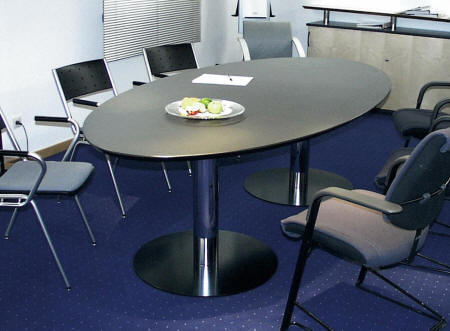 elliptische 2-Säulentische mit charakteristischen Säulenfüßen für rundum mehr Beinfreiheit.