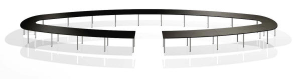 Beispiel einer ovalen Tischanlage für 38 Personen