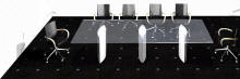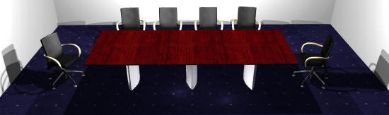 Konferenztisch für 10-12 Personen rechteckig 3.5x 1.3m Mahagoni furniert oder mit Glasplatte Elliptische Füße chrom